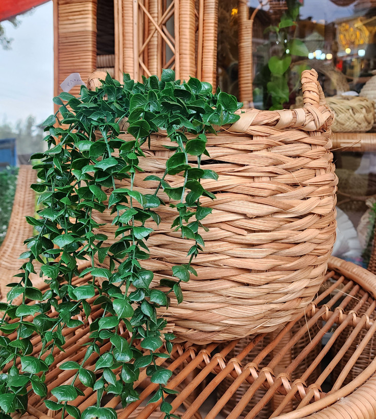 سبد حصیری بافته شده از متریال طبیعی که در برابر اب و گرما مقاومه میتونه ی کاور گلدون خیلی قشنگ باشه که گلای زیباتون زیباییش دو چندان بشه