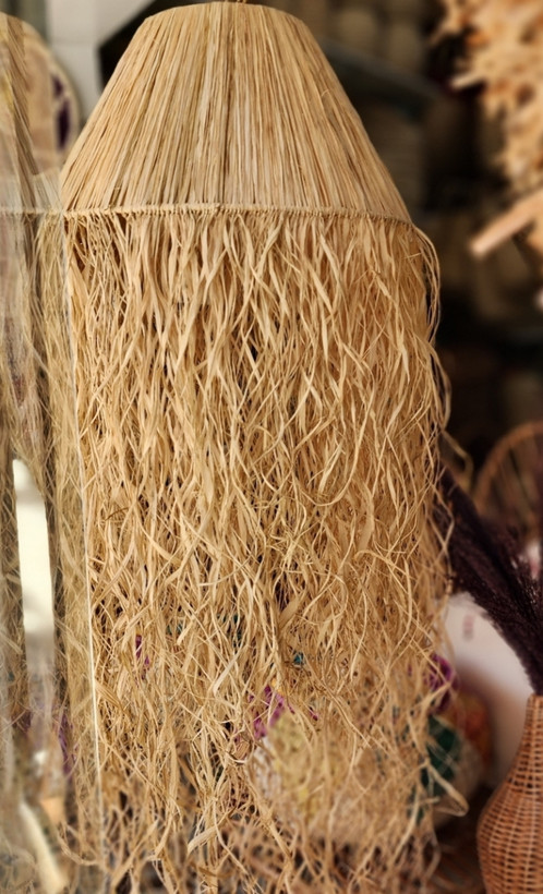 لوستر مخروطی بافته شده با رافیای طبیعی درجه یک قطر ۳۵ سانت با ارتفاع ۷۰ سانت مناسب سالن پذیزایی و اتاق خواب گزینه ی عالی برای دیزاین کافی شاپ و رستوران